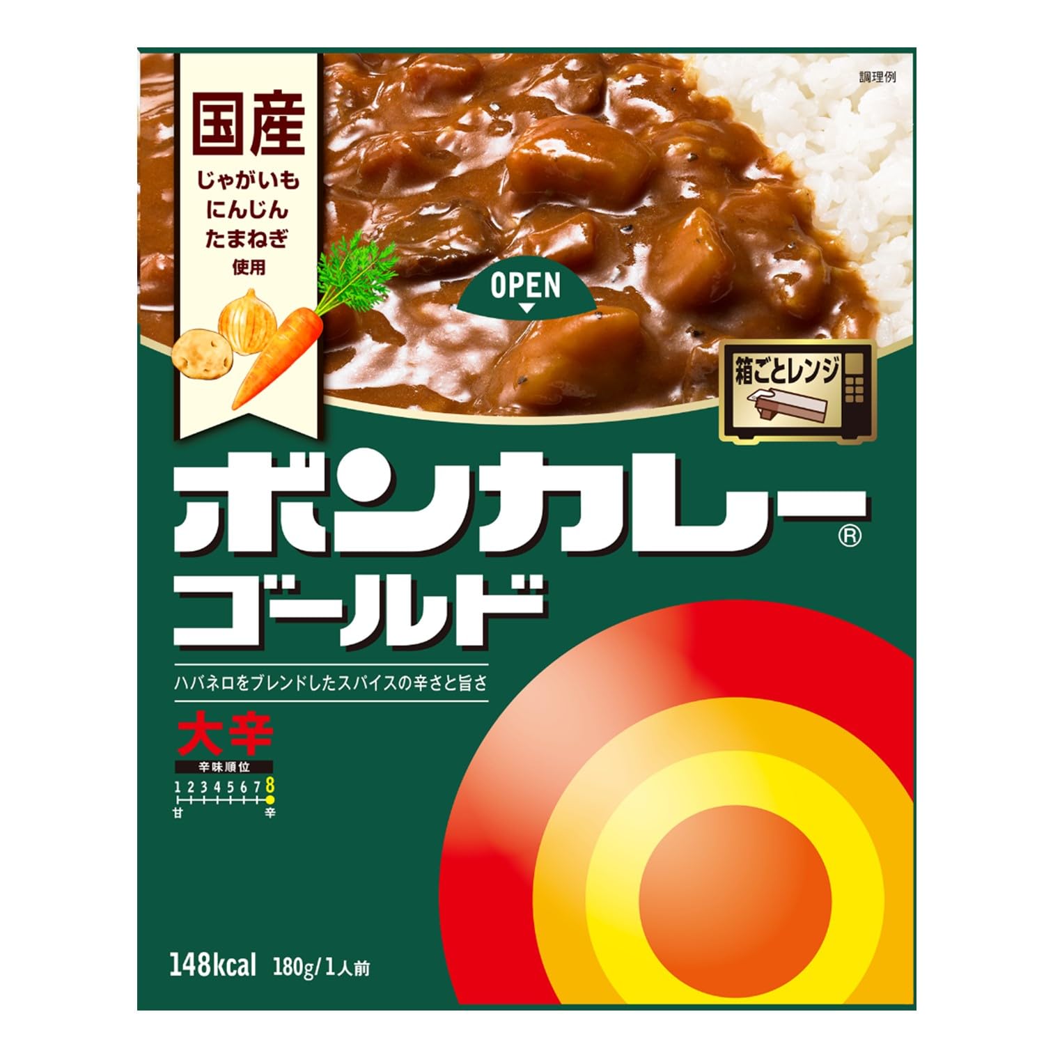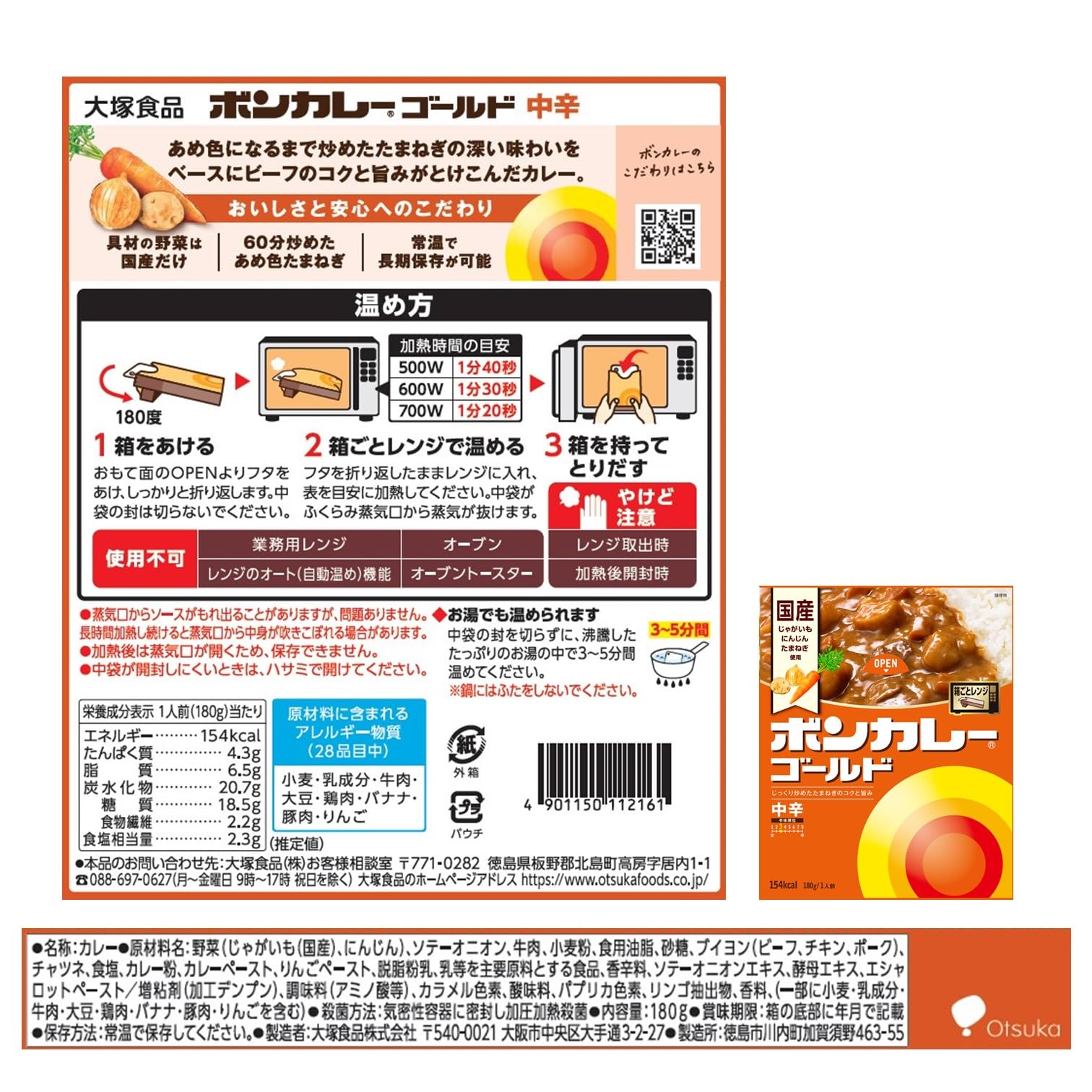 Potatoes (grown in Japan), carrots, sautéed onions, beef, wheat flour, edible oils and fats, sugar, bouillon (beef, chicken, and pork), chutney, salt, curry powder, curry paste, apple paste, skimmed milk powder, food products made mainly from milk, spices, sautéed onion extract, yeast extract, shallot paste, thickener (processed starch), seasoning (amino acids, etc.), caramel pigment, acidity regulator, paprika pigment, apple extract, flavoring