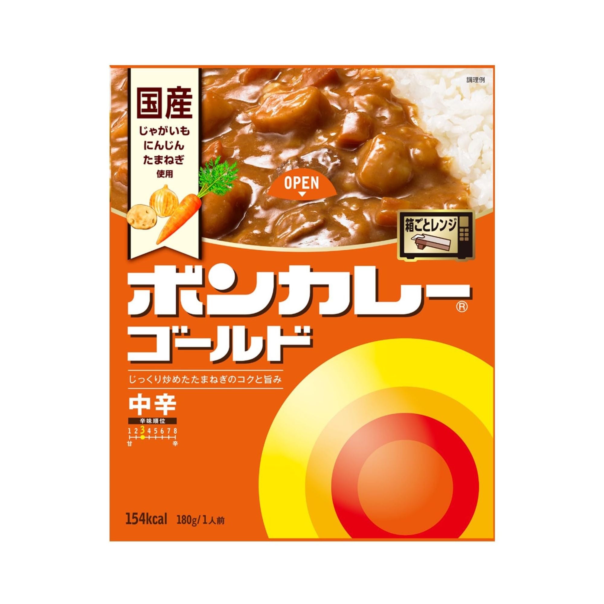 This beef curry combines the deep flavor of sautéed onions with the umami of beef, all enveloped in a perfectly balanced medium-spicy sauce. Made with domestically grown potatoes, carrots, and onions, this microwaveable curry is ready in minutes, just heat and serve over rice for a satisfying meal