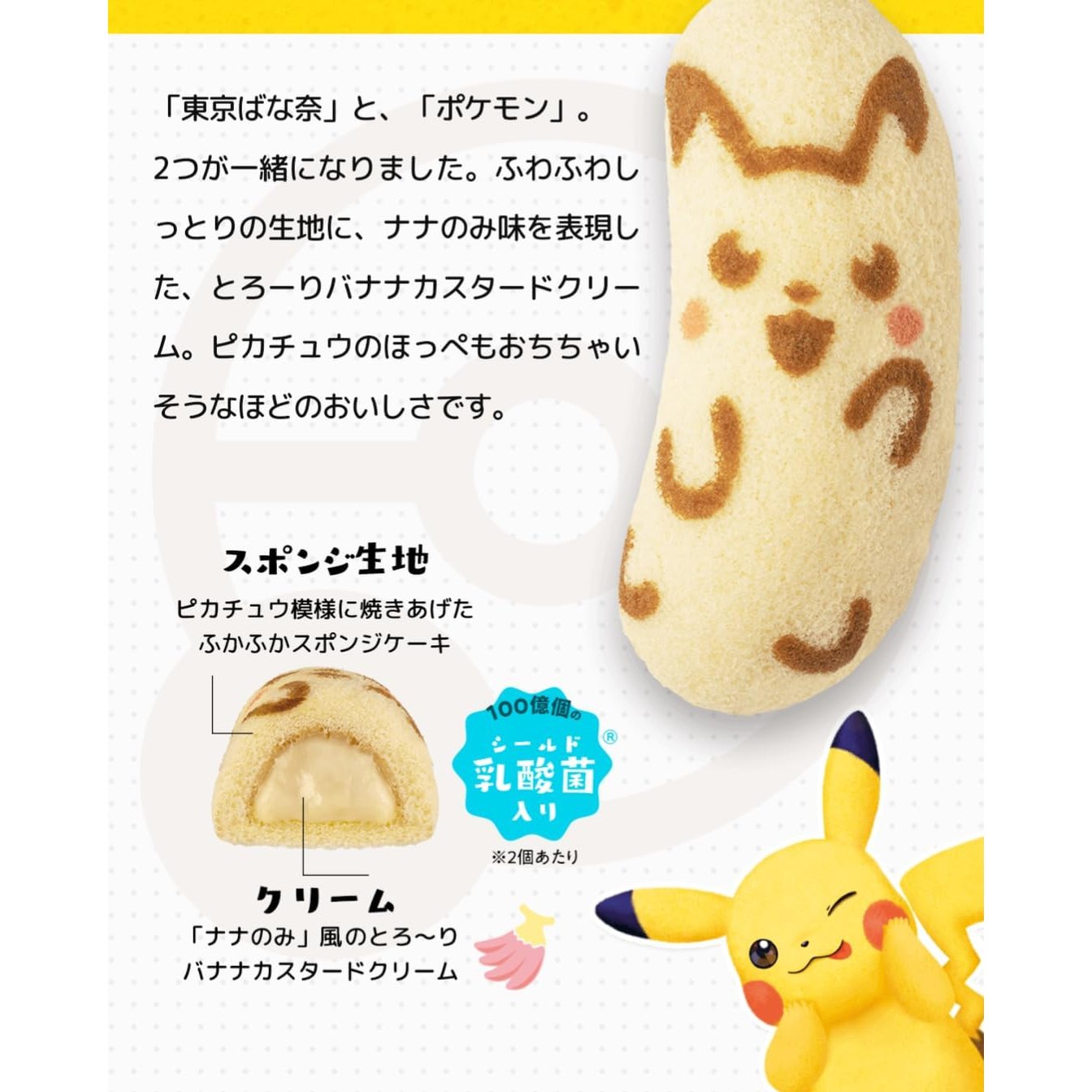 Tokyo Banana Pikachu style with a banana custard cream flavor. Pikachu patterns are available in 6 different styles.