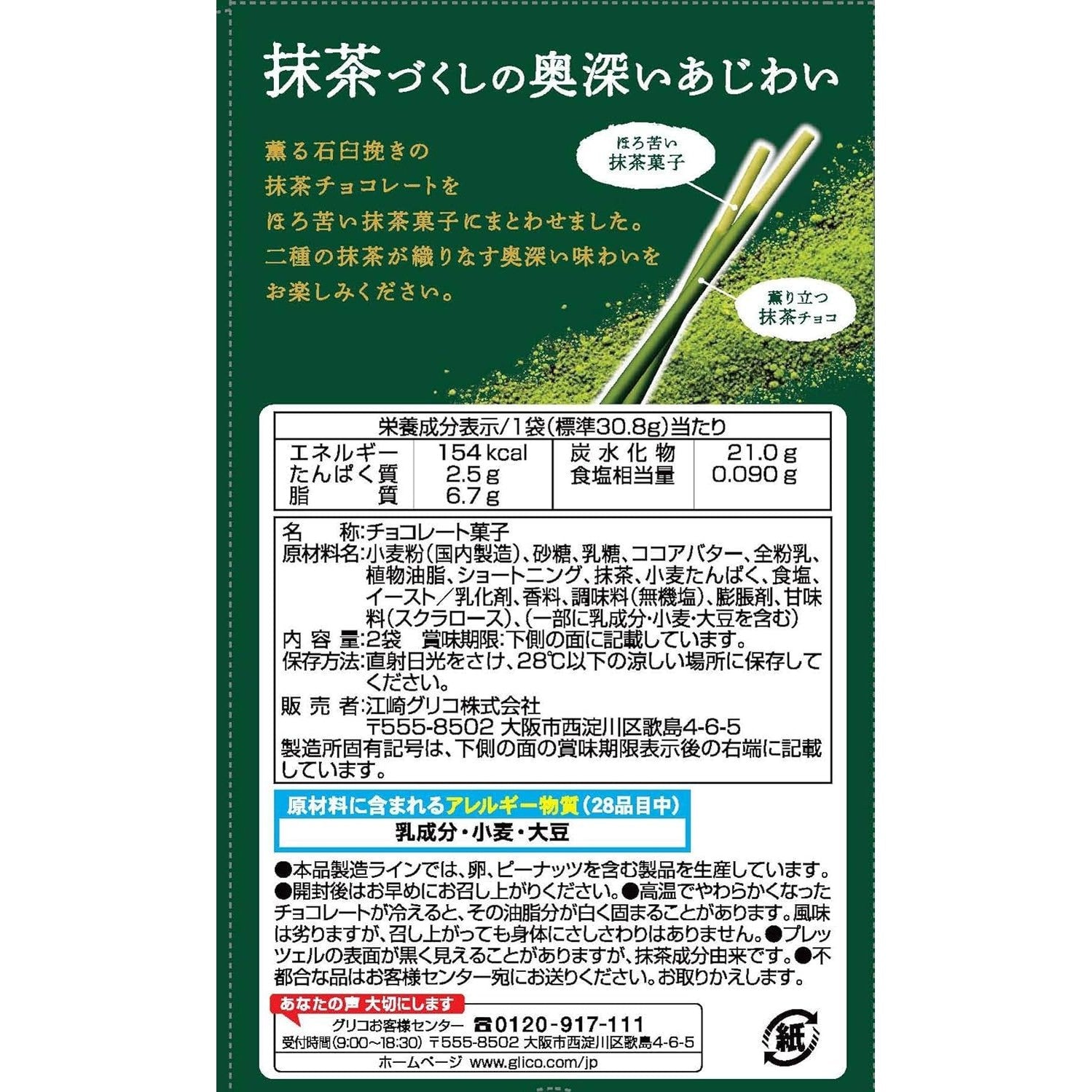 WHEAT flour, sugar, LACTOSE, cocoa butter, whole MILK powder, vegetable oil, shortening, matcha, WHEAT protein, salt, yeast / emulsifiers [lecithin (SOY)], flavoring, seasoning (inorganic salt), baking powder