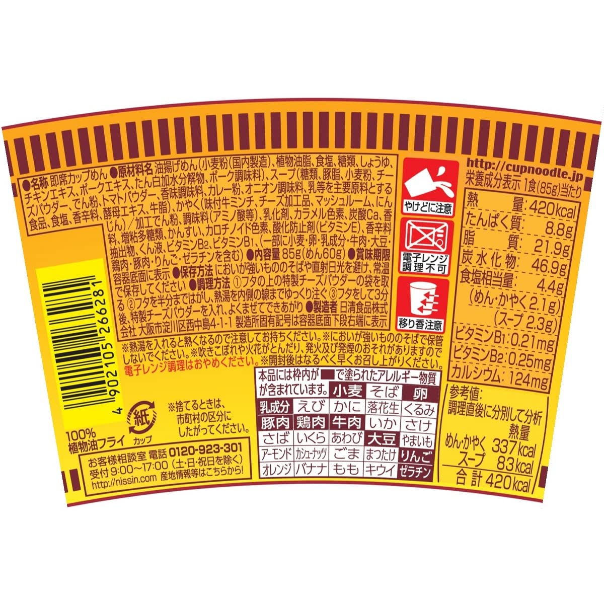 A rich and creamy instant noodle cup that combines European-style curry with a special cheese powder blend. The flavor profile includes beef, tomato, and a trio of cheeses, offering a savory and satisfying meal.