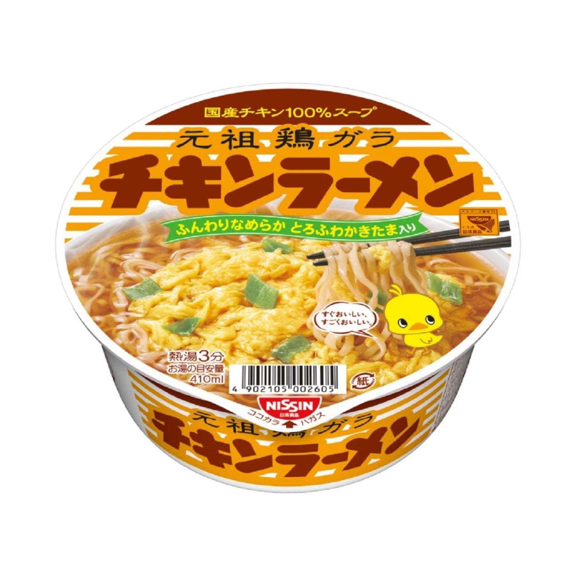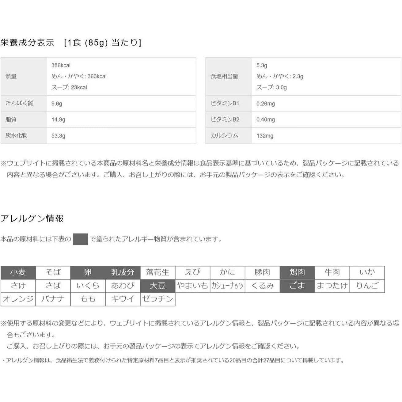 Fried noodles (wheat flour, vegetable oil, soy sauce, salt, chicken extract, sugar, spices, protein hydrolysate, egg powder, dextrin, flavoring, onion powder), Toppings (egg, green onion), Additives (starch, seasoning, calcium carbonate, kansui, antioxidants, xanthan gum, carotenoid color, vitamins B1, B2)